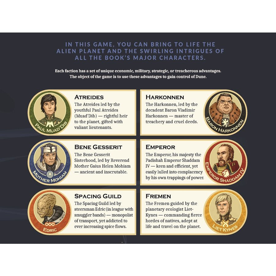 The updated version of Dune remains almost identical to the original hit game, and includes rule clarifications as well as additional cards to make the game more accessible to new players.